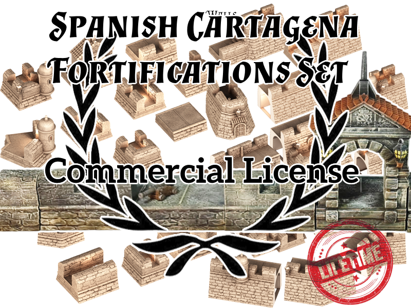 Lifetime license to commercially 3D print and sell ‘Cartagena Fortifications Set’ physically printed models.