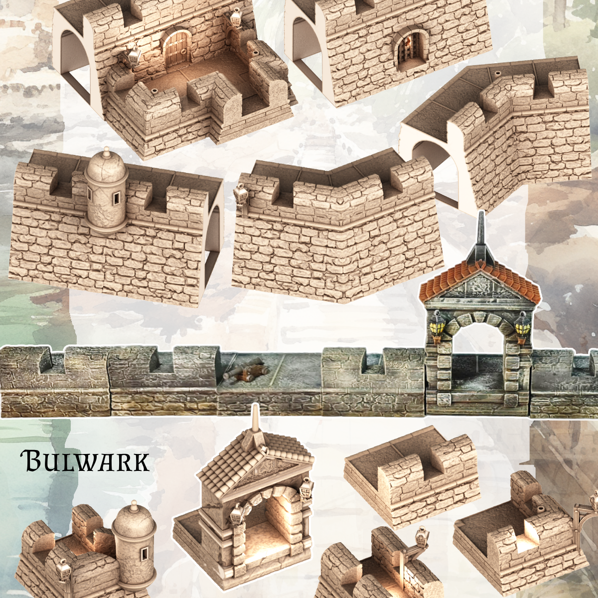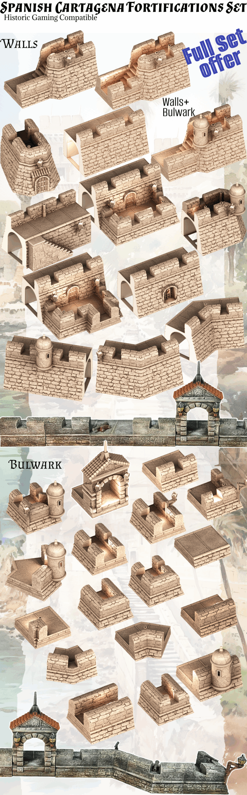 Fortification Modular System. Includes: 13 Walls and 17 Bulwarks.