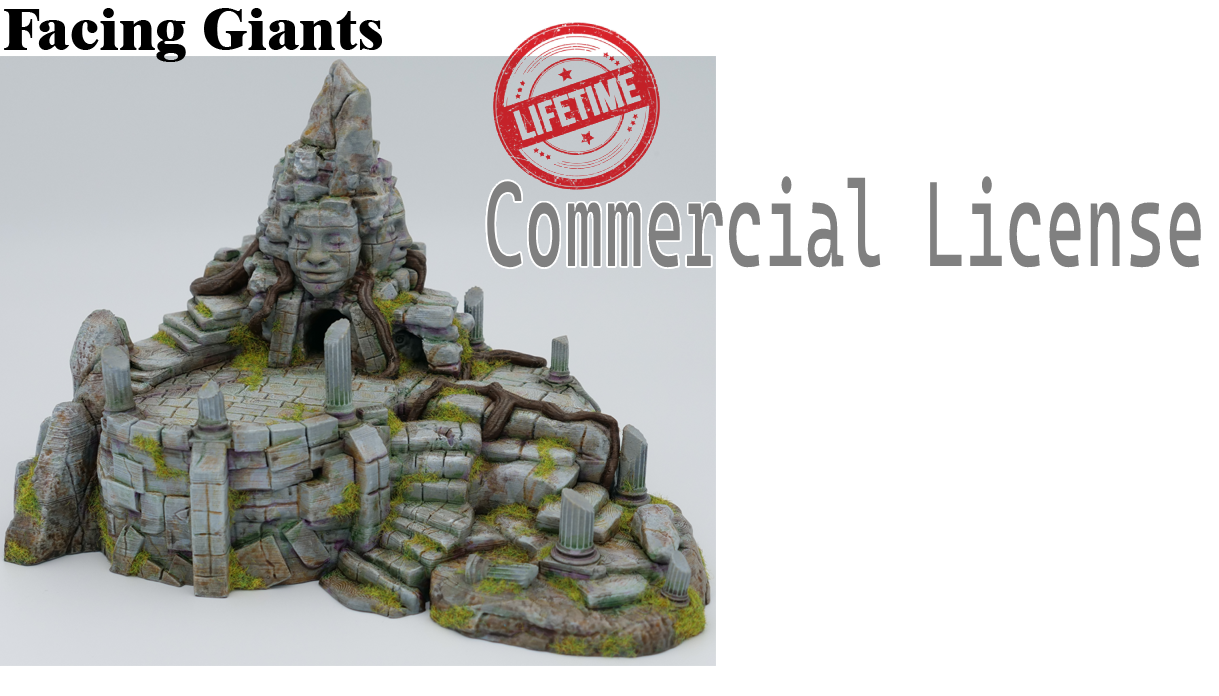 This Lifetime Commercial License includes the STL files for the ‘Facing Giants’. This license is for selling 3D prints of these models. This is a lifetime license.