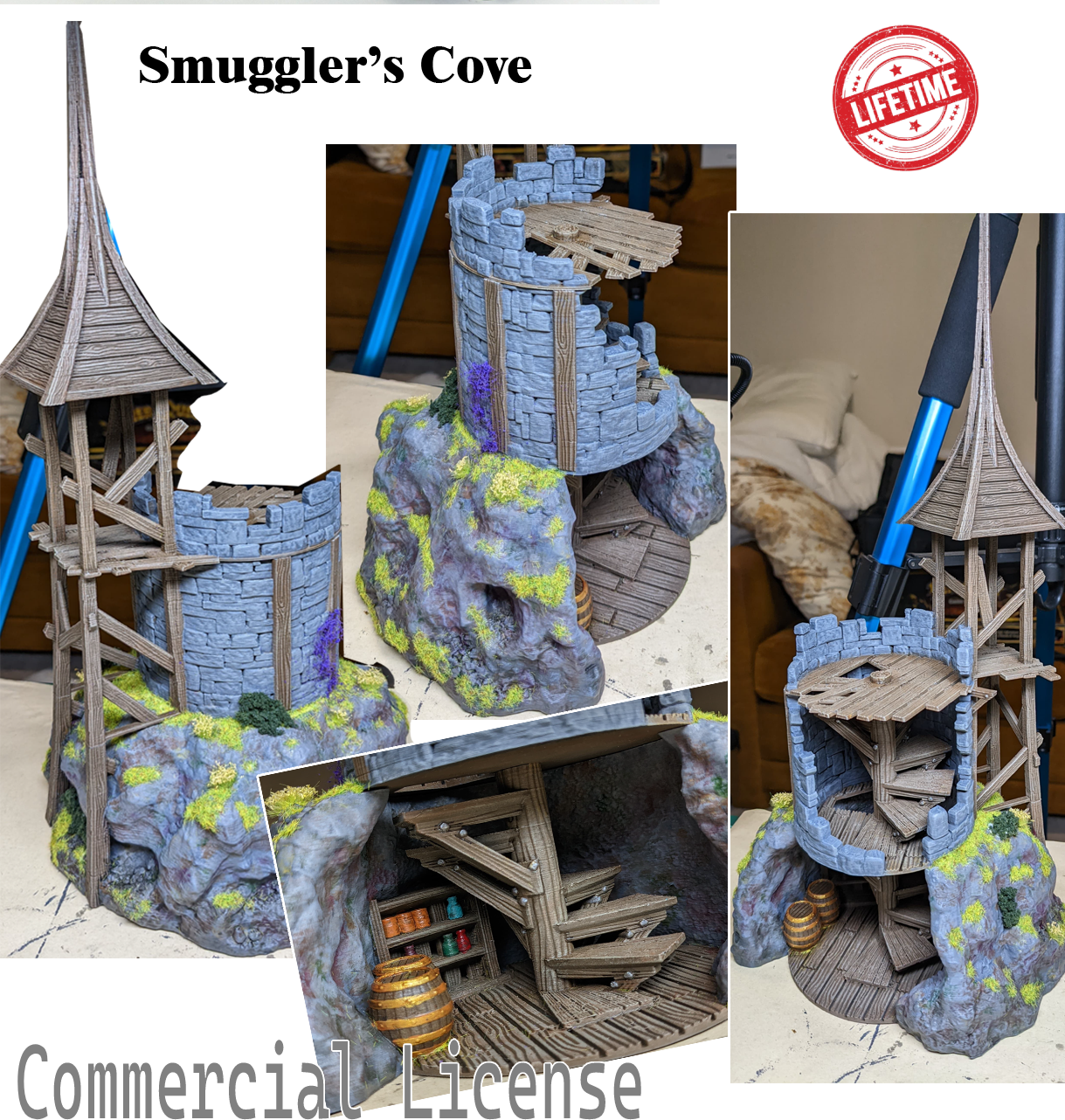 This Lifetime Commercial License includes the STL files for the ‘Smuggler’s Cove’. This license is for selling 3D prints of these models. This is a lifetime license.