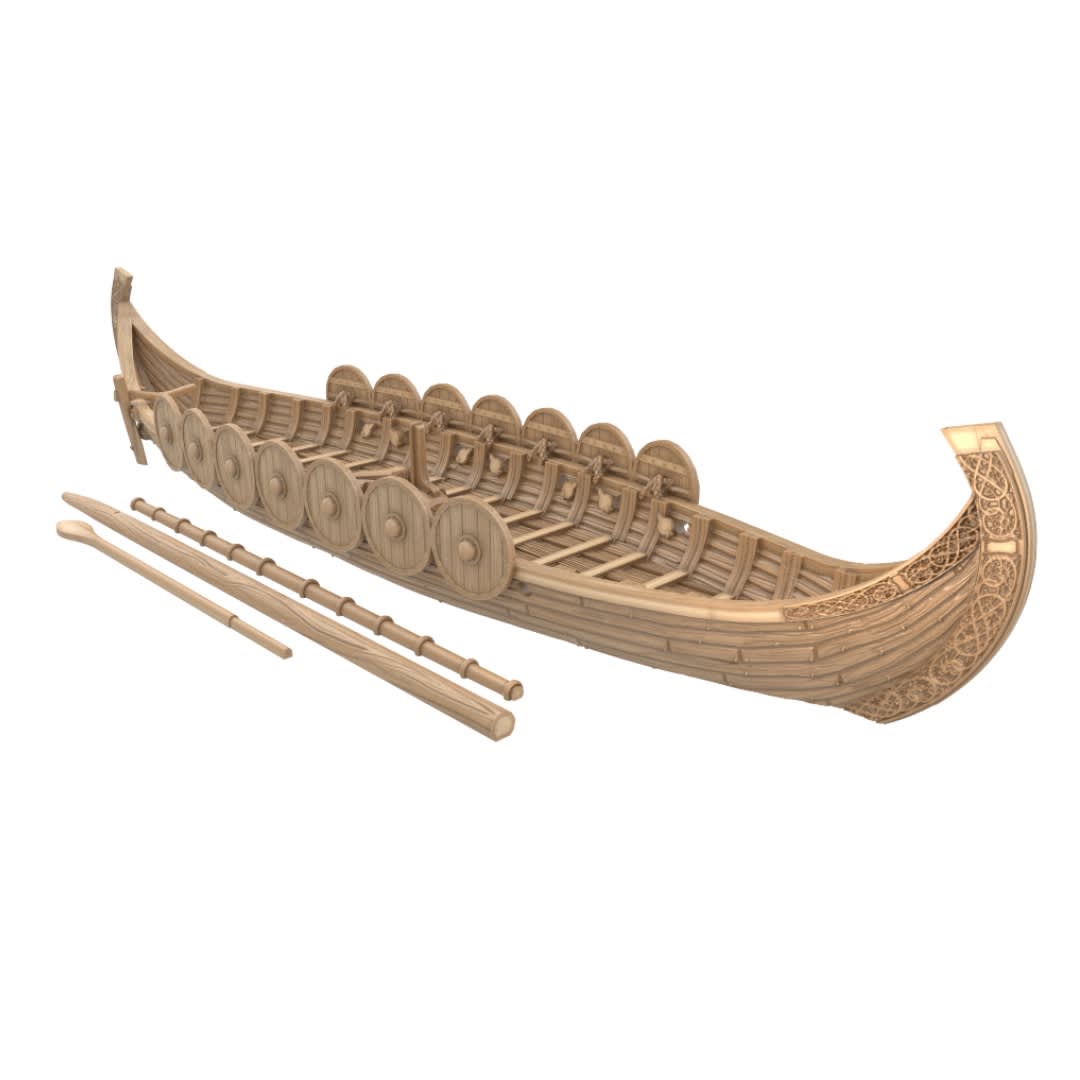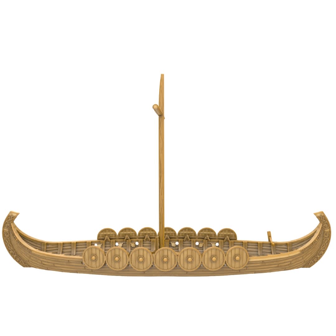 Historically, the Snekkja (from Old Norse ‘snekkja’, meaning ‘thin and projecting’) was a formidable class of Viking longship, representing the pinnacle of Norse naval engineering. While smaller than the great Skeid or legendary Drakkar, the Snekkja was the most common type of longship and formed the backbone of Viking fleets. Typically measuring around 17 meters (56 feet) in length, it was a versatile warship characterized by its long, narrow, and light construction, with a shallow draft that allowed it to navigate rivers deep inland and land directly on beaches—a crucial advantage for surprise raids. These ships were built using the clinker technique, where the hull planks overlapped and were riveted together, creating a flexible yet remarkably strong structure capable of withstanding the harsh North Atlantic. A Snekkja could carry a crew of around 40 warriors, who were also the rowers, propelling the vessel with oars when the single large, square sail was not in use. Our model faithfully recreates these historical elements, from the oar-ports and rowing benches to the iconic shields mounted along the gunwale, which offered protection during combat. The ornate carvings on the prow were not just decorative but were also symbols of status and power, intended to intimidate enemies and inspire awe. By printing the Snekkja, you are not just creating a gaming piece; you are recreating a vessel that enabled an entire age of exploration, trade, and conquest.